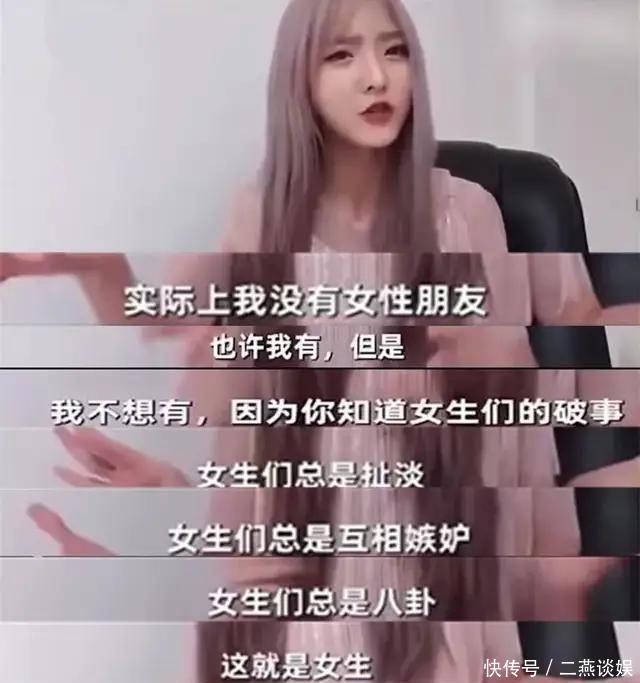 视频中的郑乃馨虽然看着一副乖巧文弱的样子,但通篇下来全是厌女言论。说什么女生总是嫉妒,女生总是八卦,女生总有一堆破事,所以她宁愿自己没有任何女性朋友。不少看过视频的网友表示:视频中的郑乃馨面相都变了,让人很难和舞台上那个元气满满的小女孩联系起来,真的是人不可貌相,海水不可斗量啊。