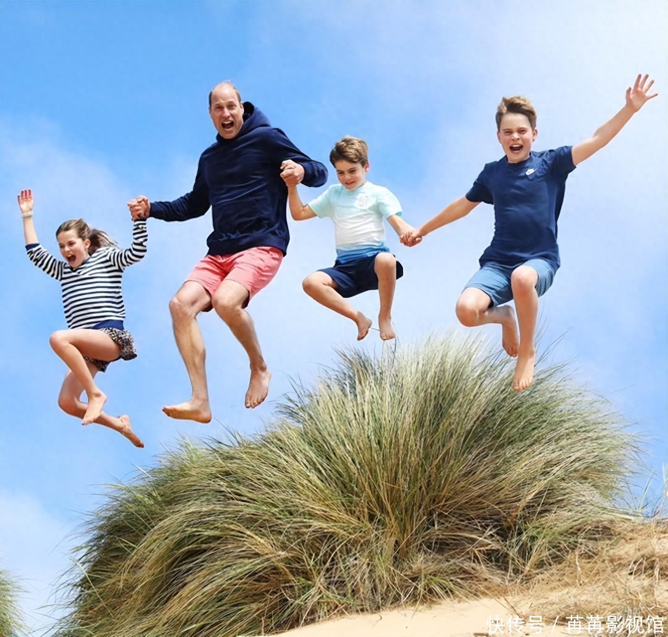 威廉王子迎来42岁生日,携手三个娃高高跳起,凯特罕见直白表爱意