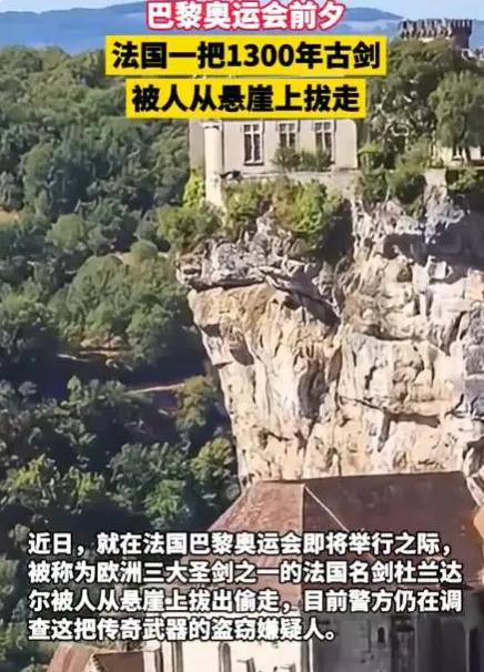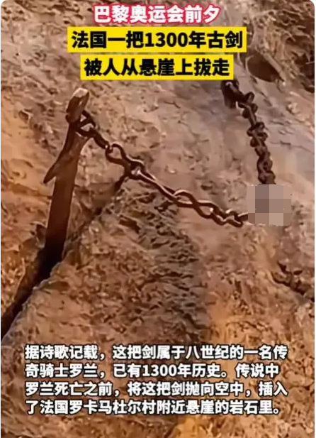 法国一1300年古剑被人从悬崖上拔走,网友称能拔走之人是命定之人