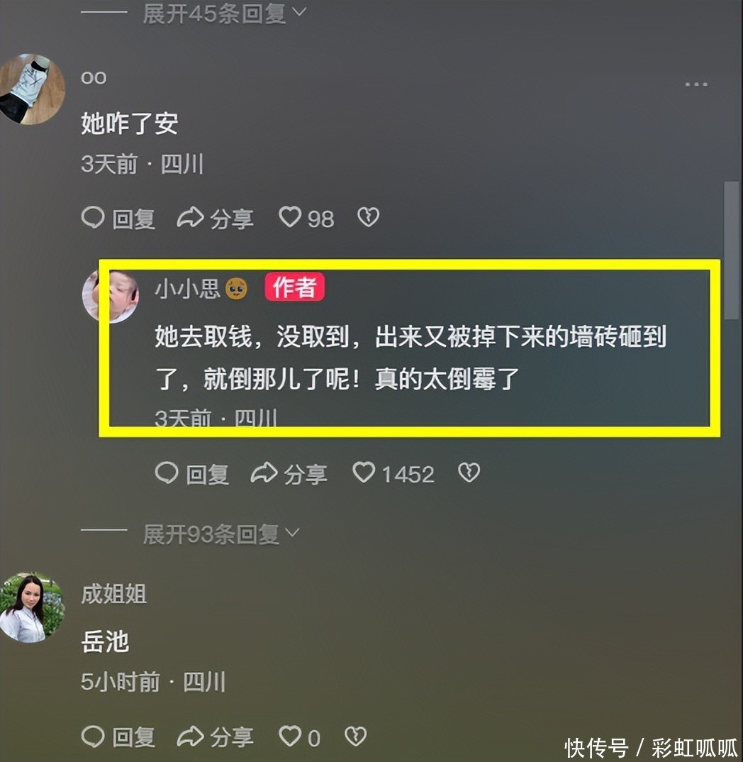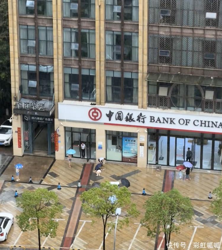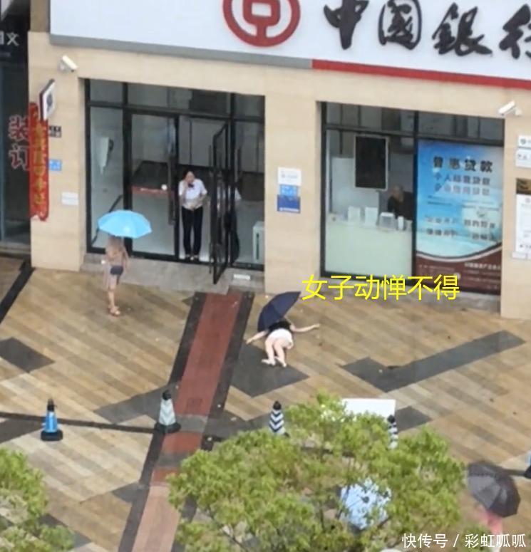 太倒霉!四川一女子去银行取钱被掉落砖块砸中,倒在雨中动弹不得