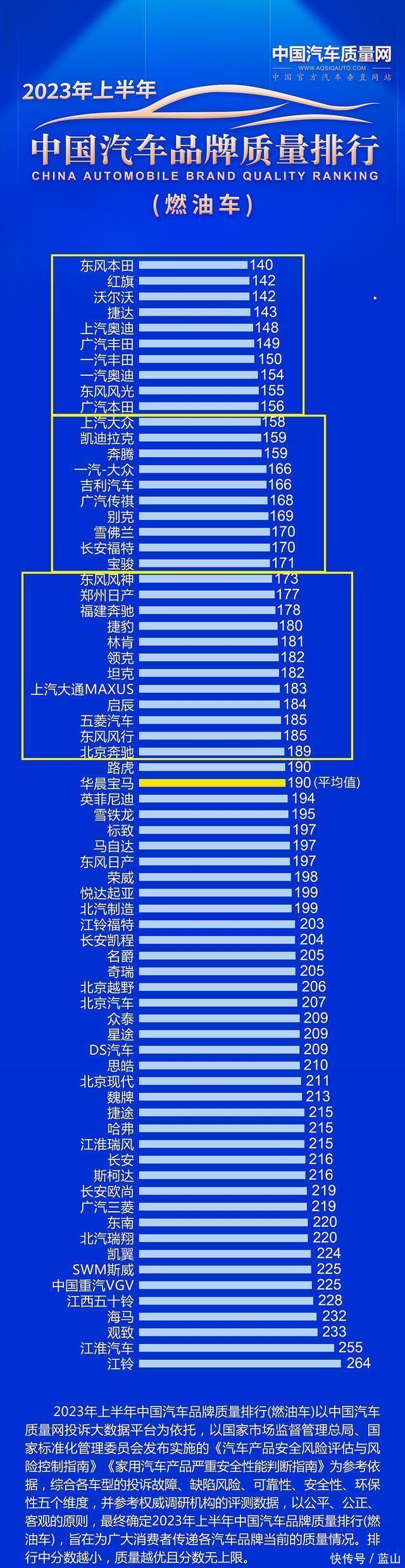 官宣!2023年汽车品牌质量最新排名出炉:仅32家达标,吉利第15!