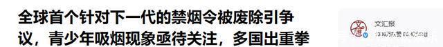 文汇报关于“全球首个针对下一代的禁烟令被废除引争议,青少年吸烟现象亟待关注,多国出重拳打造“无烟一代”的报道
