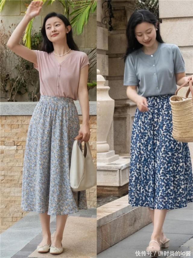 寻求减龄效果时,可以选择纯色系统的上衣搭配配色素雅的小碎花裙。例如,烟粉色、雾蓝色的上衣配上蓝白色的碎花裙,不仅显得年轻活泼,还具有柔和的女性魅力。