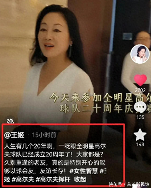 从视频中看,身穿白色坎肩套装的王姬,看上去温婉而又大方,在这场全明星高尔夫球队举办的20周年的庆功晚宴上,她无疑是受到了全场嘉宾的关注和欢迎。