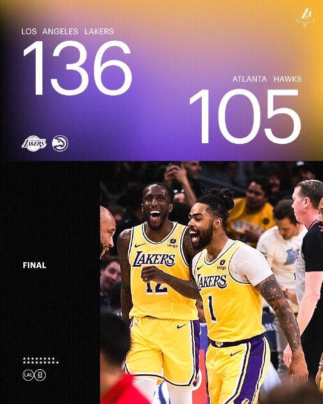 回到第9!詹姆斯25+7+10拉塞尔27+10!湖人大胜老鹰!