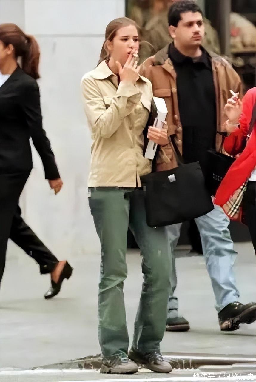 她还和自己的模特朋友们一同穿着睡衣,在街上毫无形象的吞云吐雾,一头金发凌乱的散开,用手夹着烟,嘴巴叼着烟,脸颊发红,看起来和现在光鲜亮丽的她不像是一个人。