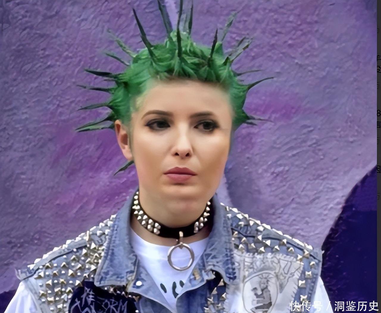 2000年,18岁的伊万卡前往一家理发店,把自己的头发烫染成了一头“绿刺猬”,一根根墨绿色的天线笔直地向上树立起来,而她双眼无神,烟熏妆遮掩不住法令纹。