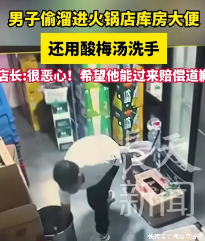 炸裂!男子溜进火锅店库房大便!随后还用酸梅汤洗手!评论区沦陷
