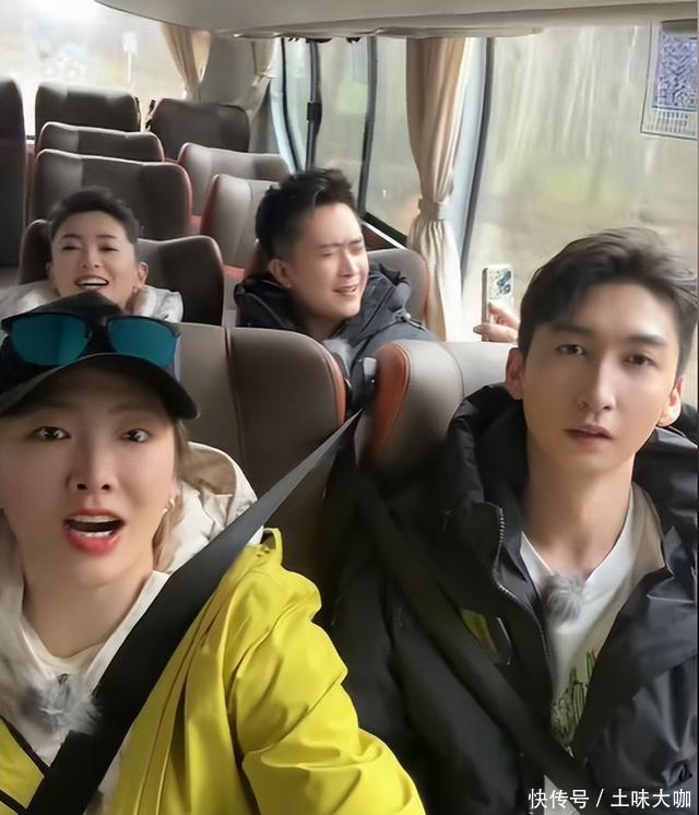 月亮姐姐和三位同事一起乘车外出——主持人车厢内拉歌,月亮姐姐和尼格买提唱的起劲,杨帆随声附和,只有王冰冰一言不发