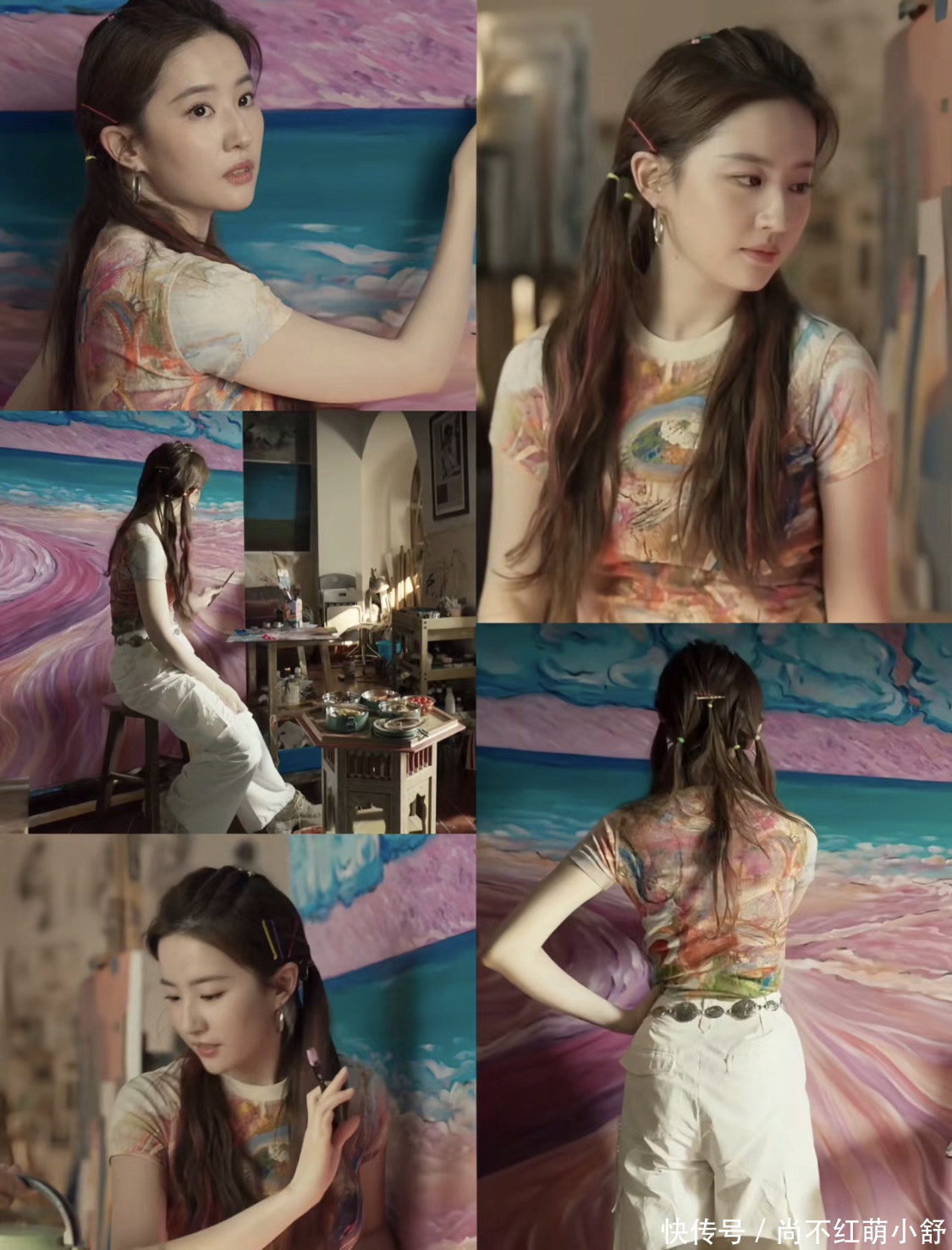 同时,她还善于运用撞色搭配来打破单调感,让整体造型更加出彩。这种颜色艳丽的时尚,的确也符合剧中黄奕枚美术生的人设。