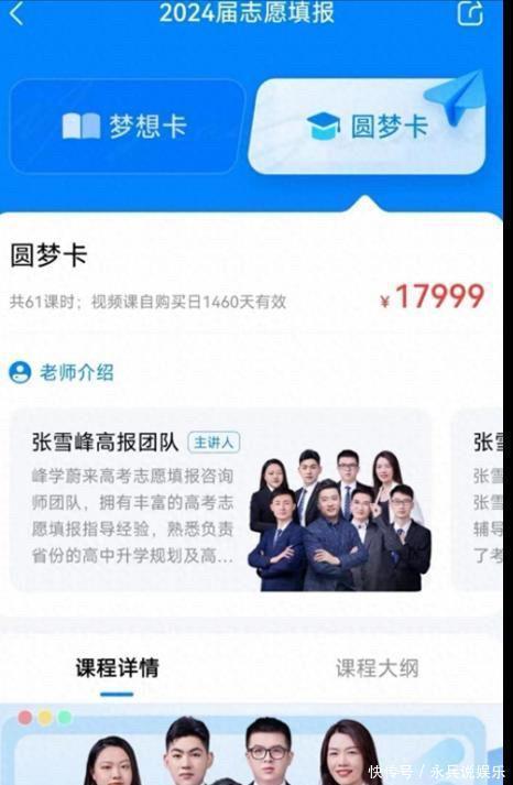 正如大家看到的,他推出来了高考志愿填报服务,有11999元的梦想卡,17999元的圆梦卡。仅仅3个小时,就被抢购一空。
