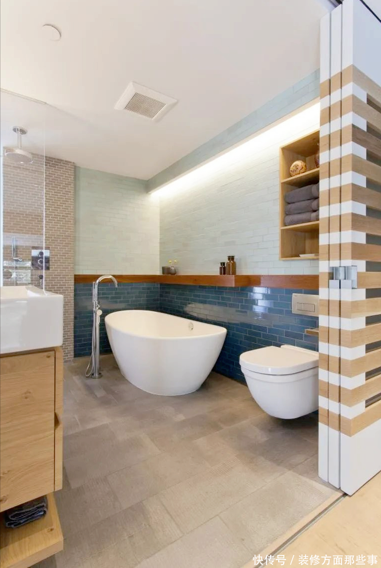 我格外喜欢卫生间那扇门,三联推拉式的折叠设计充满了创意。