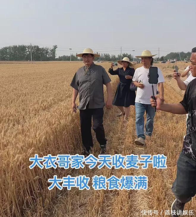 大衣嫂是个能干人,大衣哥在外头演出的时候,家里的农活可都是她一个人在忙活着,等到大衣哥回来,地里的麦子大块地已经收割完了。不过大衣哥这人就是放心不下,非得亲自到地里去看一眼。他穿着一件短袖上衣,头上戴着草帽,走在田间地头,就像个领导在视察工作似的。