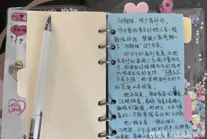 她在社交平台晒出了自己的笔记本,并将其中所写的内容大方分享给粉丝。