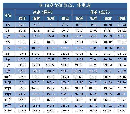 ,可以参考这份《3-18岁儿童青少年身高体重对照表(男、女)》来判断,这份数据非常的可靠。
