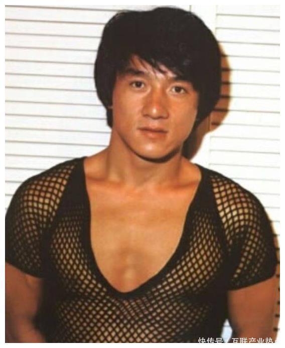 照片中成龙大哥一袭黑色渔网上衣将自己的好身材展露无遗,你可别以为这是现代网友的恶搞P图,这可是货真价实的原图!