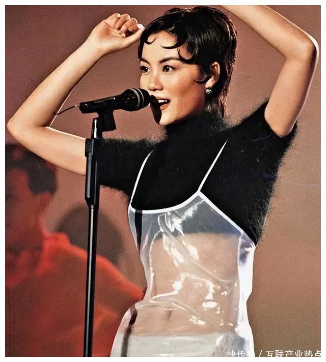 王菲身着一袭透视装受邀出席香港电视台的颁奖典礼,留下了这张经典的照片。这样大胆的穿搭即使是放在思想开放的现在来看,依旧惊艳万分。