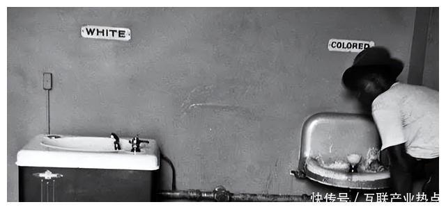 该照片拍摄于1957年的美国,“黑白对立”程度极为夸张,甚至还因为当时的社会现状诞生了一个新词“种族隔离”,其实从下面这张照片就可以对这种剑拔弩张的局面窥得一二。