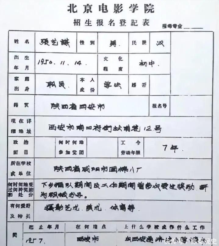 游本昌、张艺谋、陈坤三人亲笔书写的学籍卡您见过?字迹格调不同