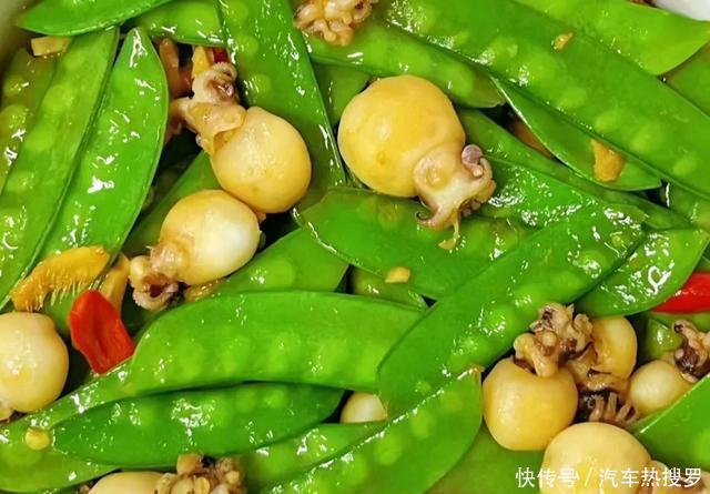 荷兰豆、墨鱼仔、姜丝、蒜末、小米辣。