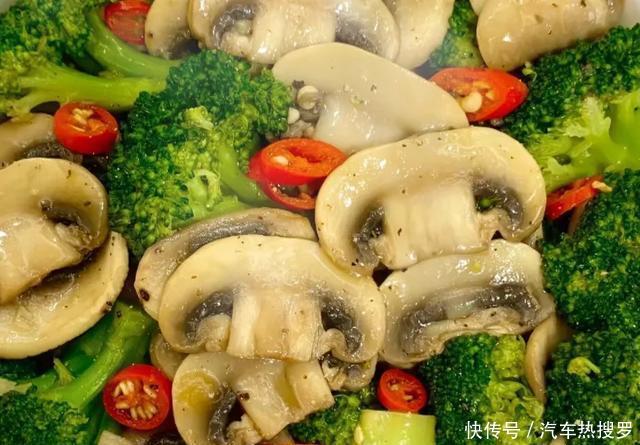 西兰花、口蘑、蒜末、小米辣、黑胡椒粉。