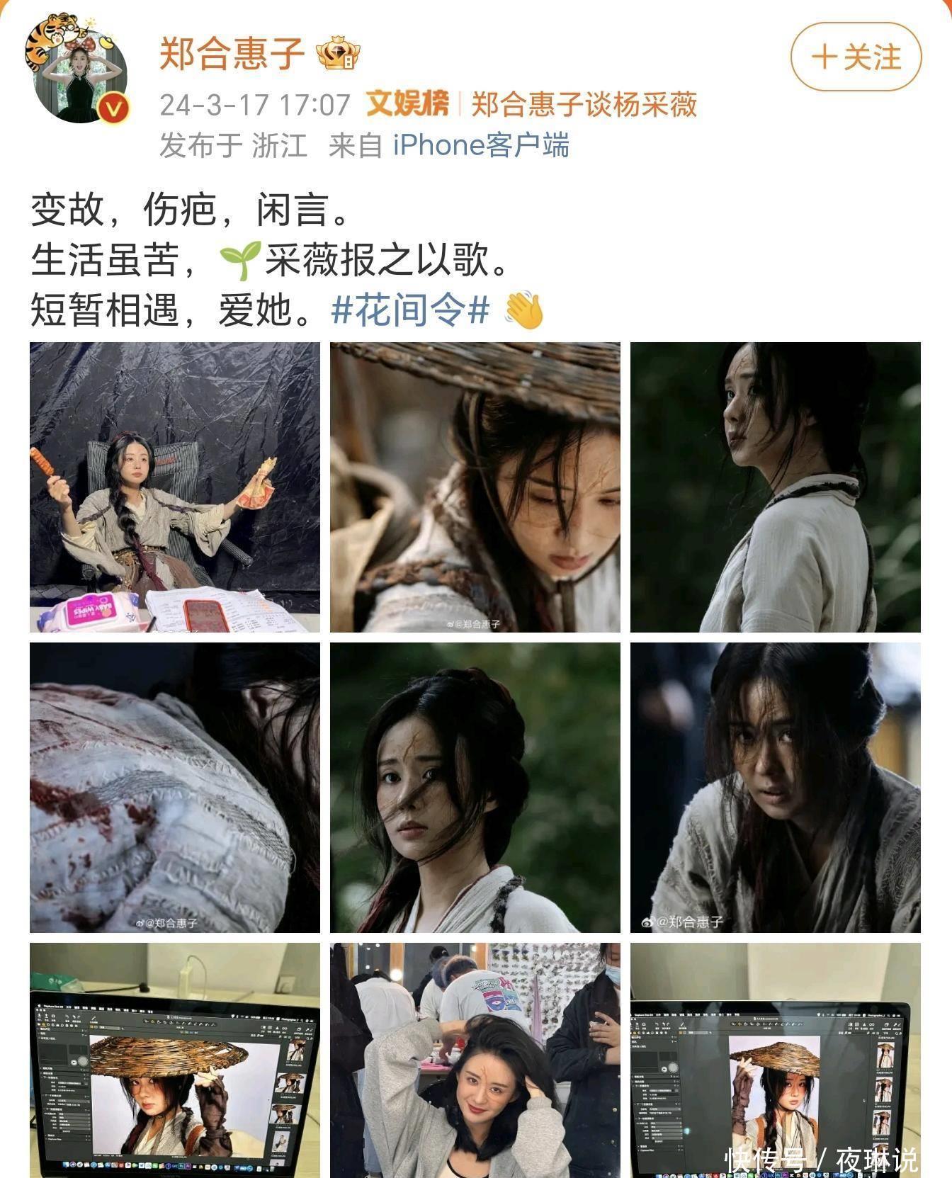 郑合惠子晒《花间令》杨采薇剧照及幕后照,表示:短暂相遇,爱她