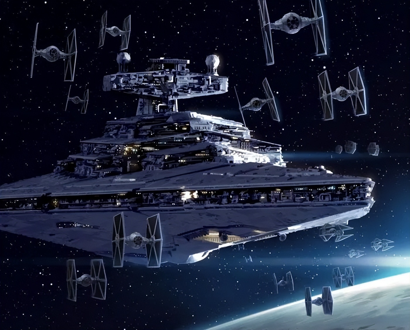 《星球大战》中的歼星舰是科幻小说中最大的航天器之一。它是《星球大战》中的超级武器,也是银河帝国的骄傲和最强大的象征。这个庞然大物在“新希望”的第一幕就给观众留下了不可磨灭的印象,它能够搭载46700名机组人员、72架帝国TIE战斗机、Y85泰坦运输船、哨兵级登陆穿梭机,并配备了加压激光炮和重离子炮。帝国级歼星舰作为重型火力平台,可以执行舰队战、轨道轰炸、行星毁灭和俘获轻型战舰等各种任务。它的对手不是人类,不是武器,不是宇宙飞船,而是整个星球。
