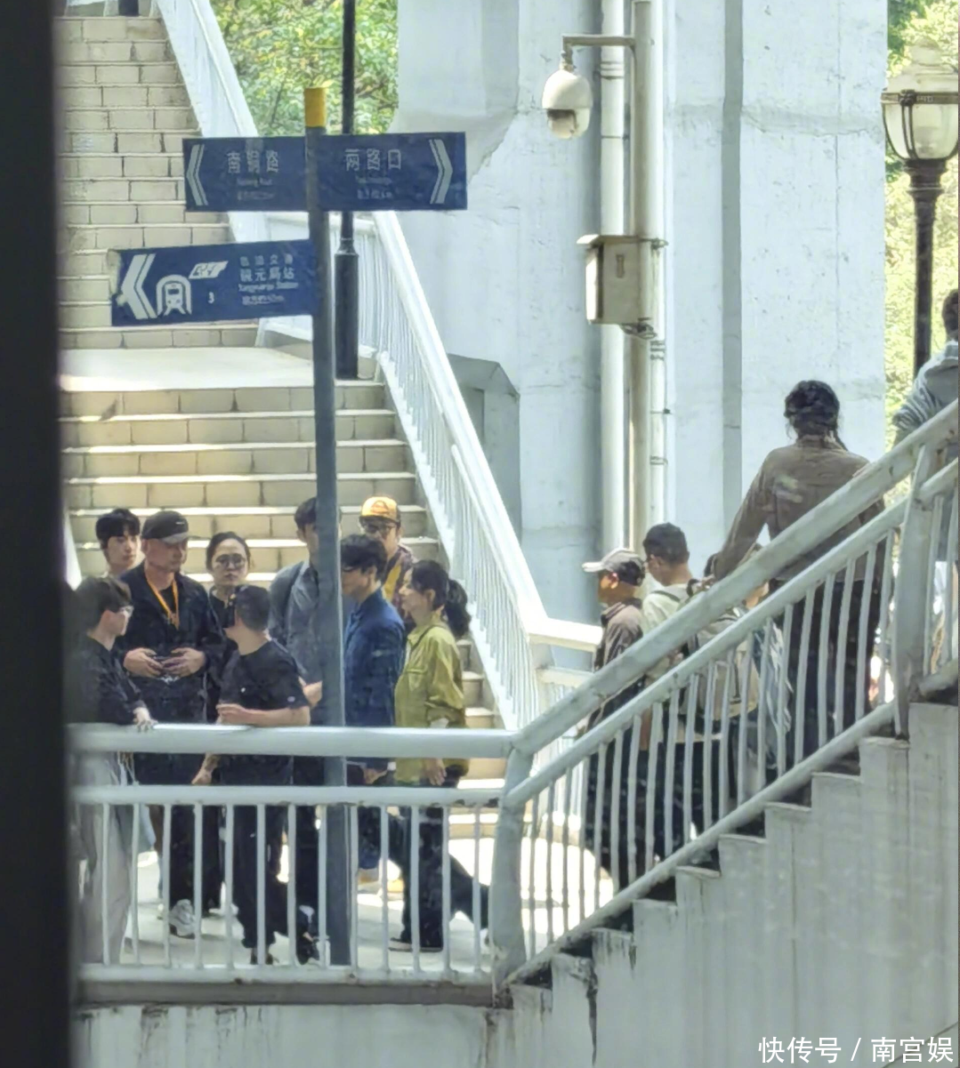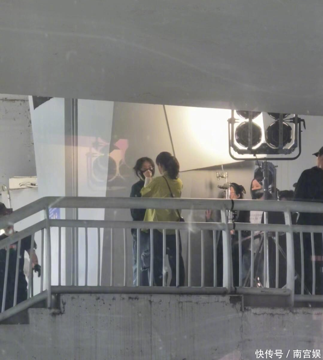 赵丽颖新剧路透,紫色挑染马尾造型好青春,男主都不认识