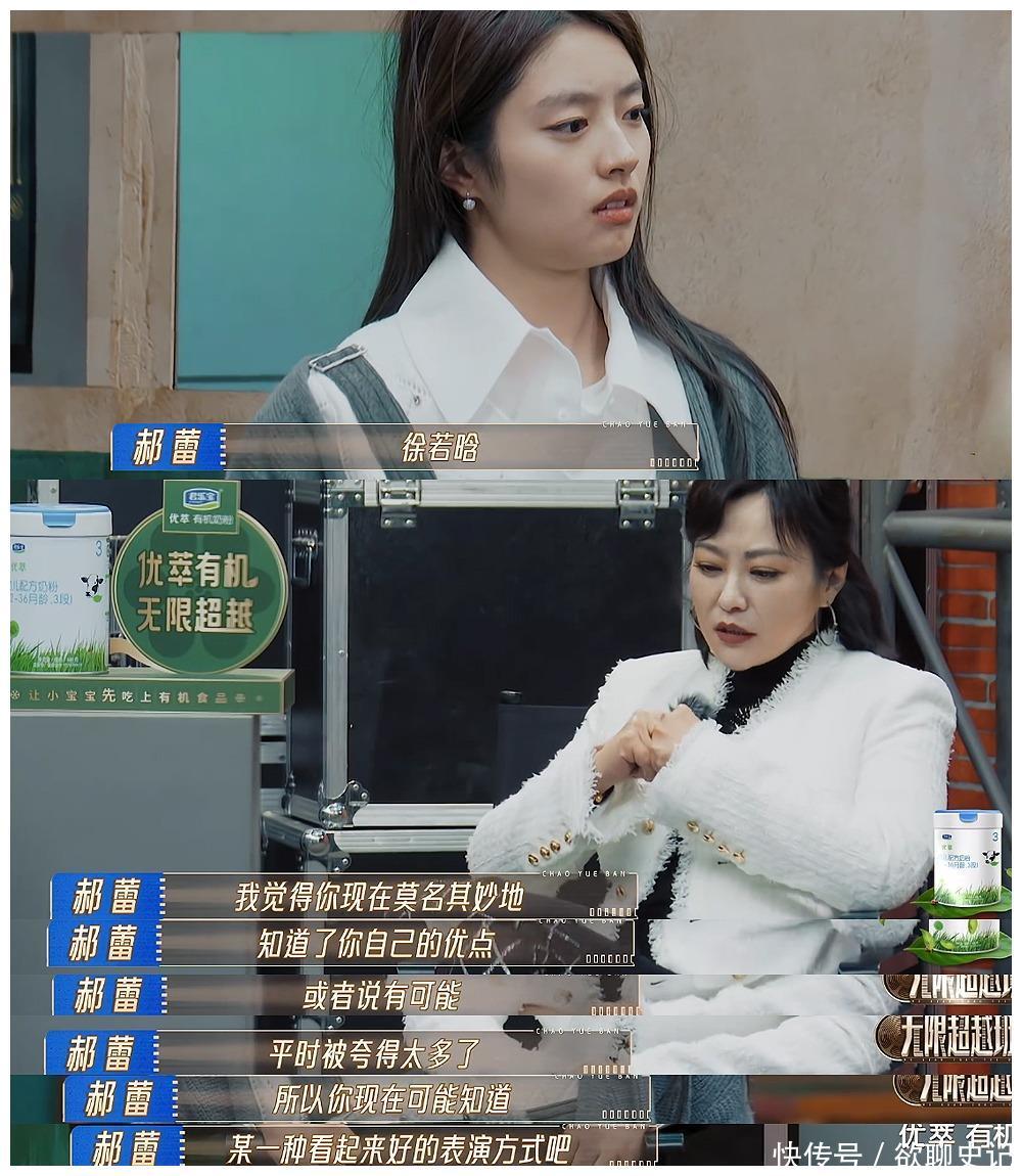 除了王锵之外,同部剧的徐若晗也被评为第一梯队,但她看着也有点飘了,首先是第五期哭得莫名其妙,尔导都看无语了,做个没有存在感的光替就这么委屈吗?其次是演技逐渐套路化,和张栋梁的对手戏被郝蕾批评没有交流,因为太知道在什么时刻应该露出怎么样的情绪、怎么样的表情,完全不和对手互动。郝蕾说的很直接,直言徐若晗这么演,可能是因为被夸多了,但其实也有一点,可能是对偶像出身的张栋梁不太信任,觉得对方未必有演技。