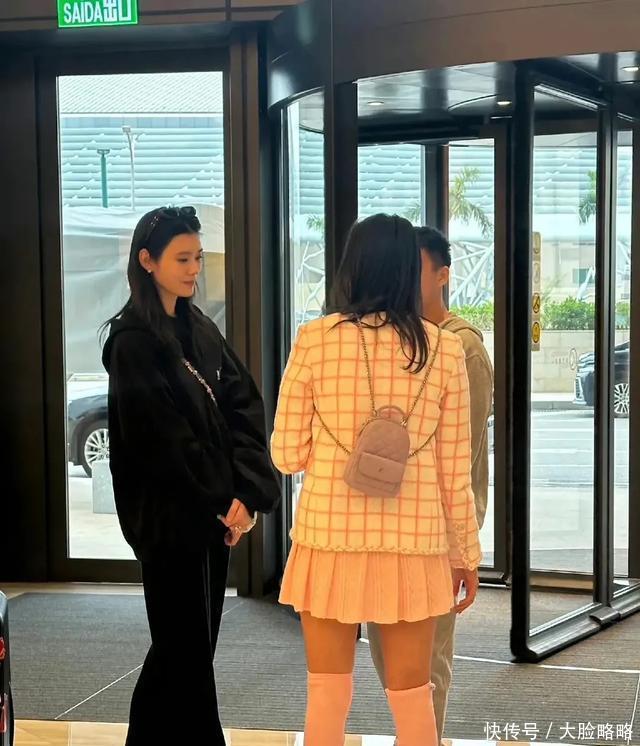 奚梦瑶不愧是豪门贵妇,穿一身黑带粉嫩少女装扮小姑子出游很贤惠