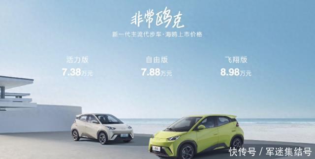 最高续航405km,全系标配侧气帘+快充,比亚迪海鸥7.38万起售