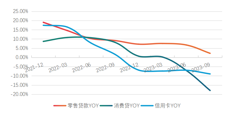 所以平安银行开始严控零售贷款的增长,特别是去年下半年,据业内人士透露,在花呗等互联网平台若有借款,现在也可能无法在平安银行申请部分贷款,审批条件严格了不少。结果是2023年前三季度消费贷和信用卡增速转负,曾经的零售银行优等生,如今进入深度调整修炼期。
