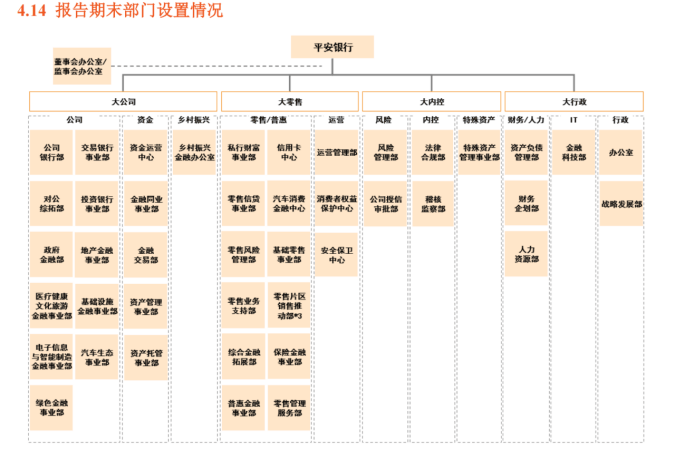 2022年末平安银行的部门设置