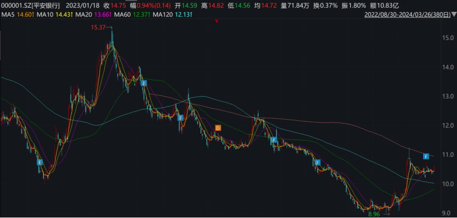 一向以股价弹性较高著称的平安银行,为何开始提高分红比例?事实上,从2023年上半年“中字头”银行涨停开始,“高股息”策略火了整整一年。而与之相反的是,平安银行的股价从2023年初的15块多一路跌至2023年底的9块多,几乎与某些高分红的银行股走势背道而驰。