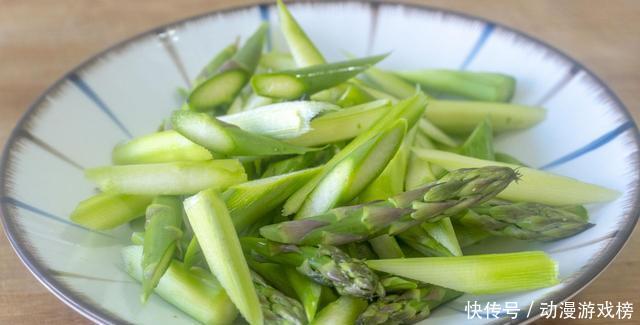 1、芦笋300克去掉老的根后削皮,然后切小段儿备用。
