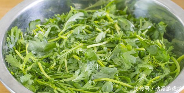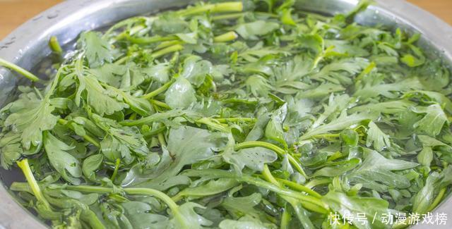 1、茼蒿一把,清洗好后再放在盆里,加淡盐水浸半个小时,可以有效的清除茼蒿中所含有的农药化合物,浸泡好后捞出来晾一晾水分,接着切成小段儿。