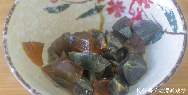 2、皮蛋一个,去壳后切成小丁。
