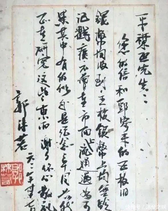 郭沫若的书信真罕见!其上字迹才是书法的最高水平,略带毛体笔意