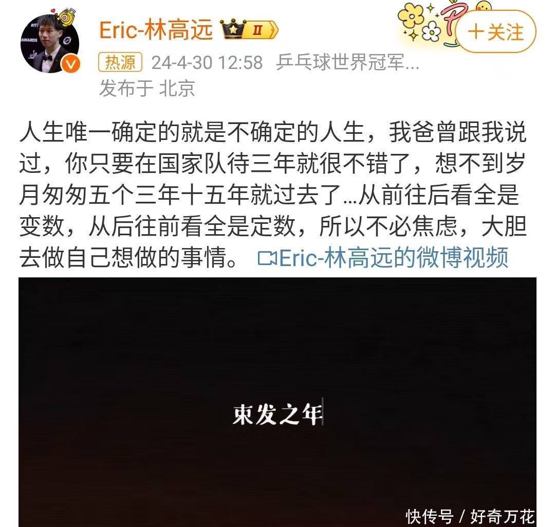 15年国乒生涯,林高远摊牌,官宣去向,王皓遗憾,父亲期望曝光