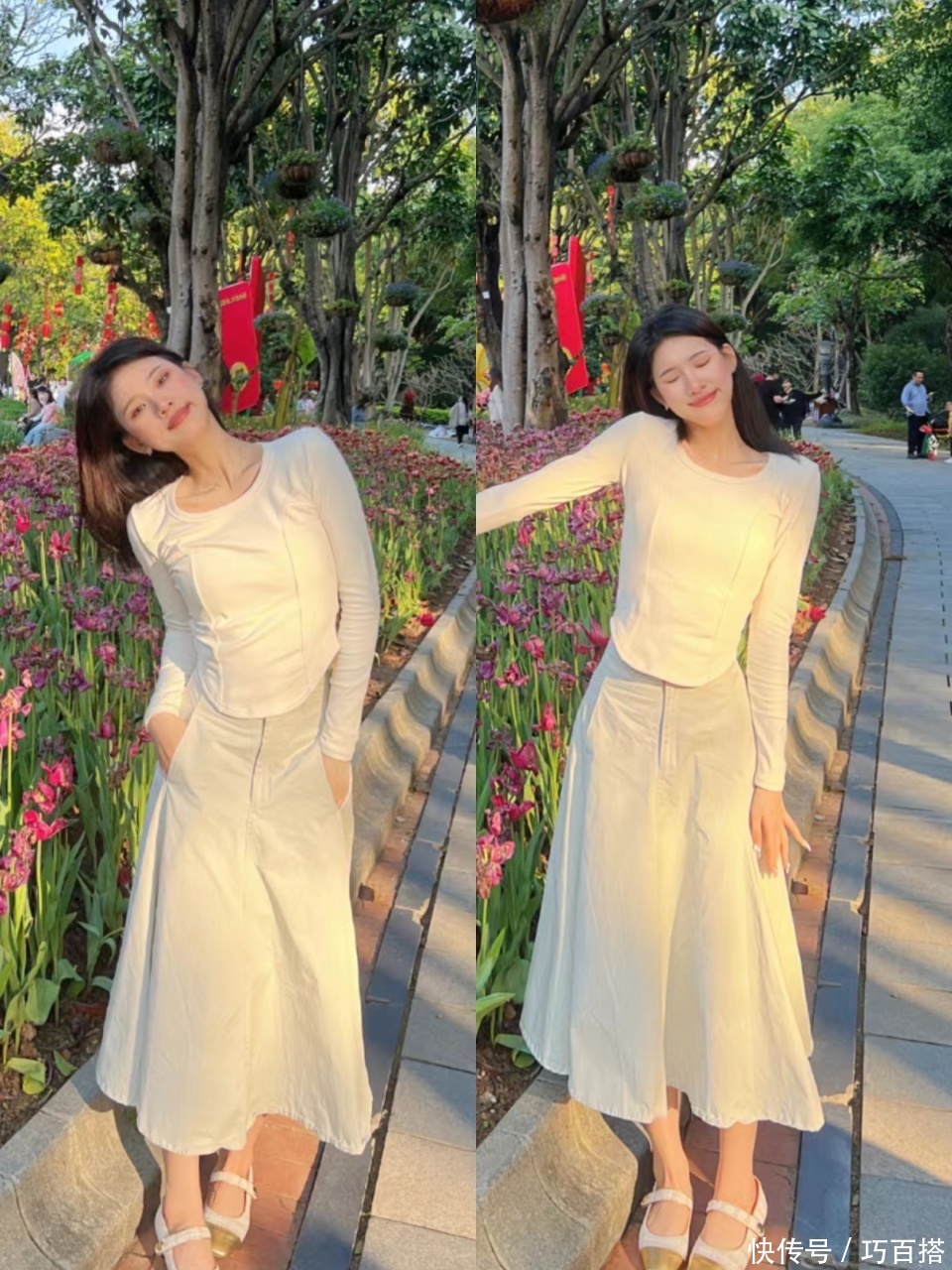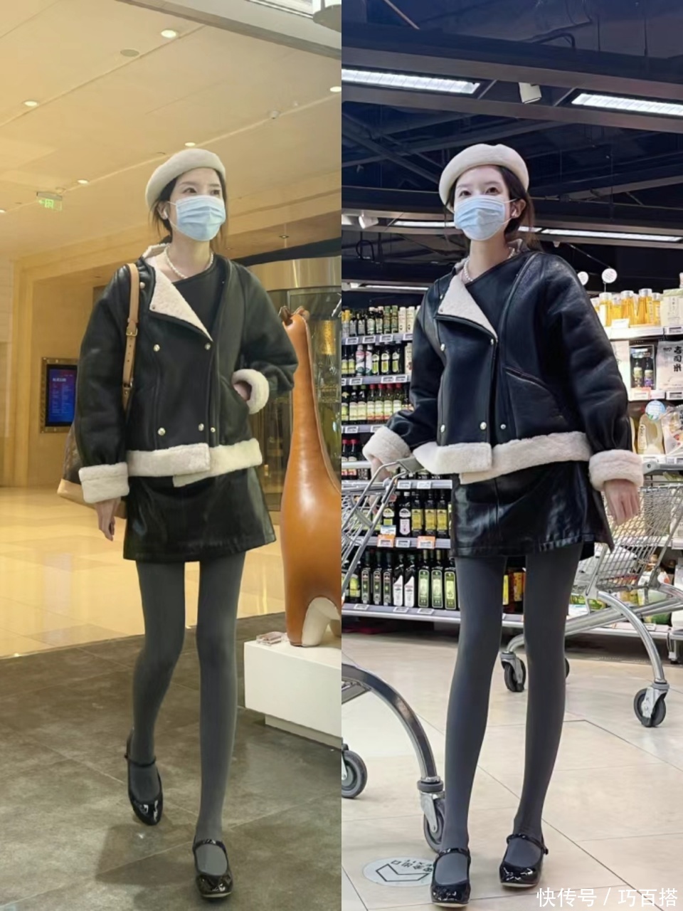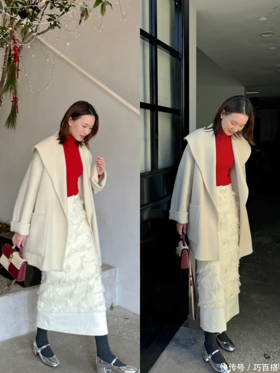 从博主上身效果来看,单穿玛丽珍鞋和搭配连脚袜美感基本一致,尤其是在下装都是半身裙的情况下。