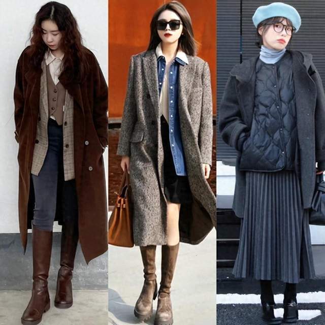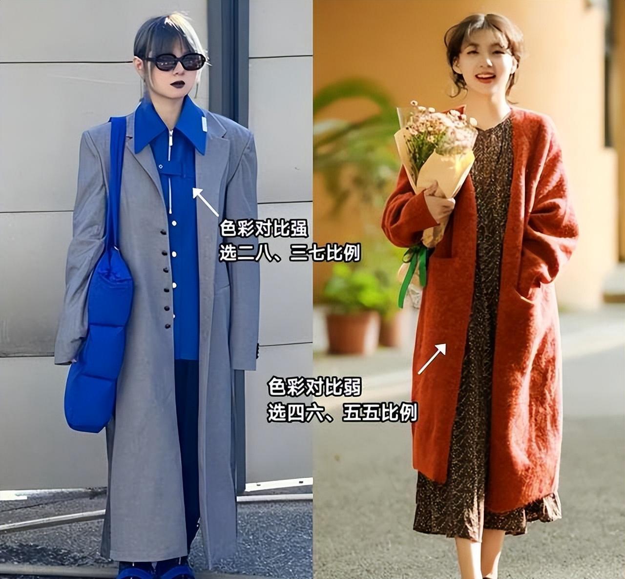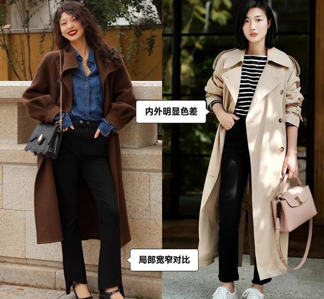 将长款大衣与短款外套搭配,或者选择宽松的大衣搭配紧身的外套。这种对比的设计能够在整体造型中产生视觉上的冲击,展现出时尚的态度。此外,你还可以尝试选择不同的颜色和材质的大衣和外套,以创造出更多的时尚可能性。