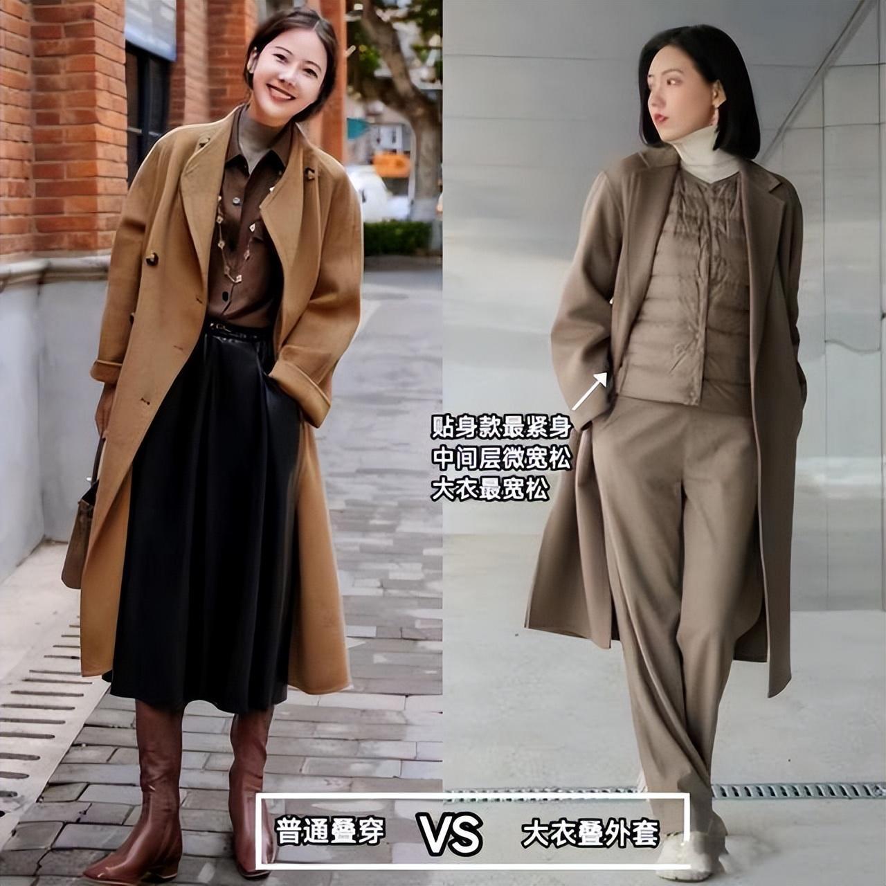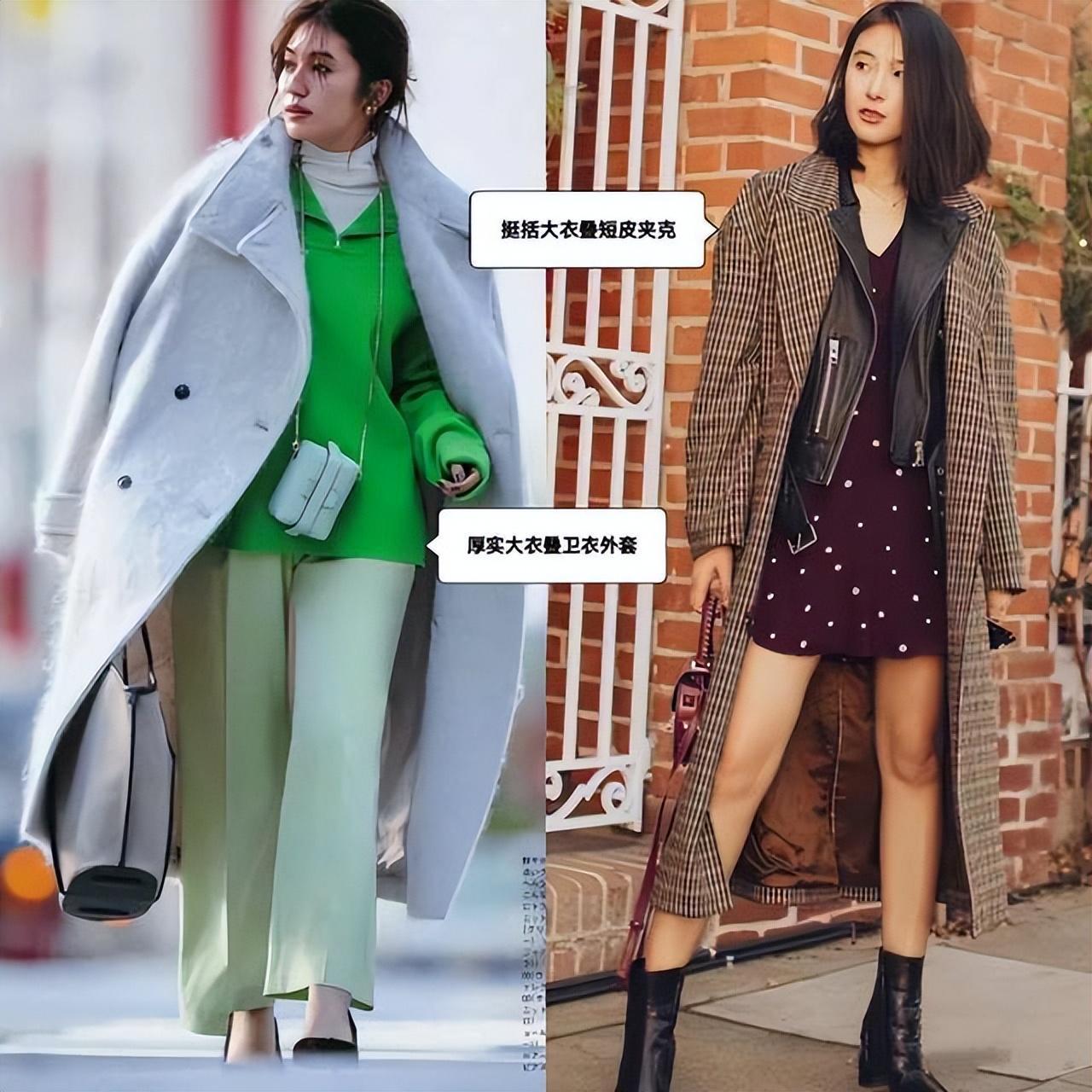 ①,“叠着穿”是指在寒冷的冬季,在大衣外再套上一件薄型外套或夹克的搭配方式。