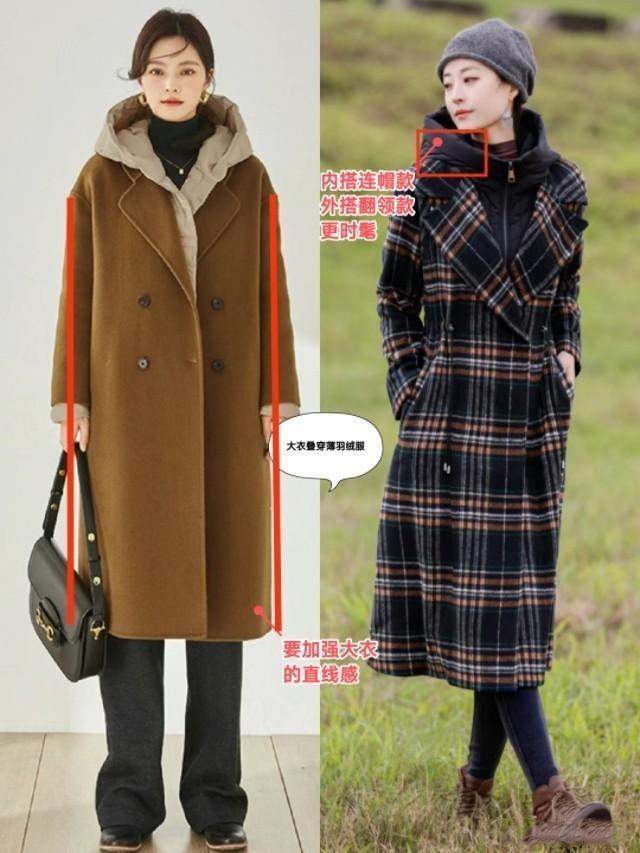 ③,在叠搭的过程中,还可以考虑不同款式的大衣和外套进行组合搭配。