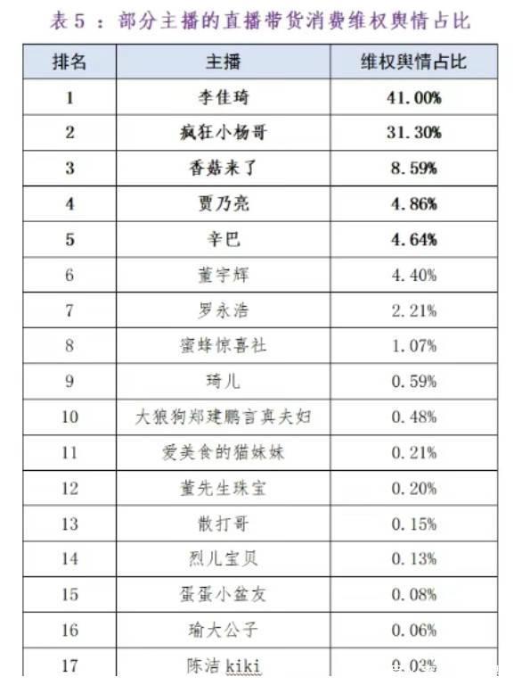 消费维权数据曝光!贾乃亮李佳琦等17名主播出事,董宇辉也上榜了