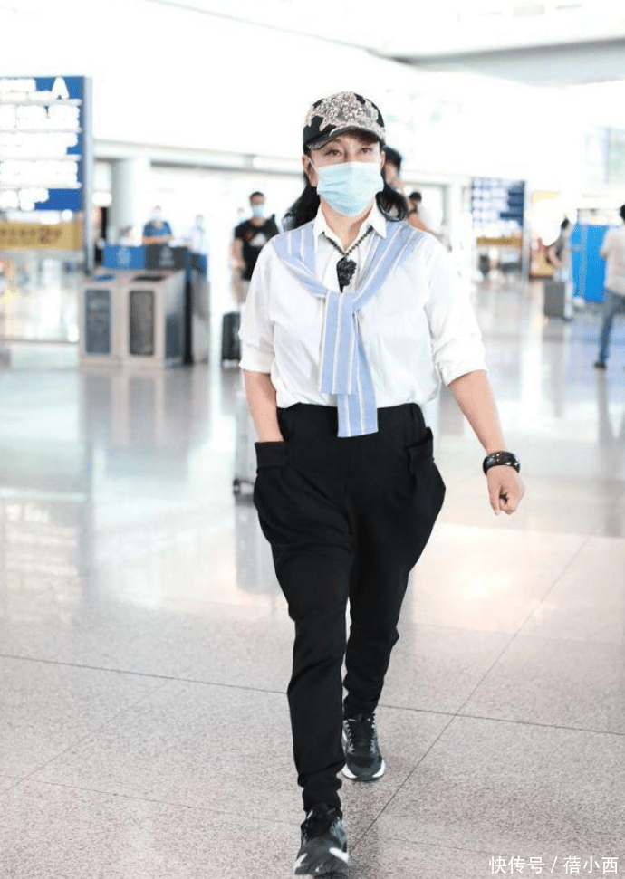 71岁刘晓庆机场无修图流出!眼角皱纹明显老态,但穿搭是真的洋气