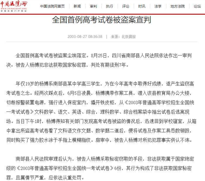 那时候,高考试卷的保密制度并没那么完善,往往会把卷子提前放到保密室存放,这才让张博有了可乘之机。