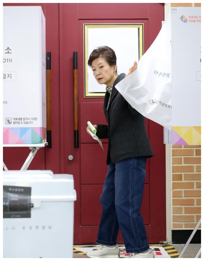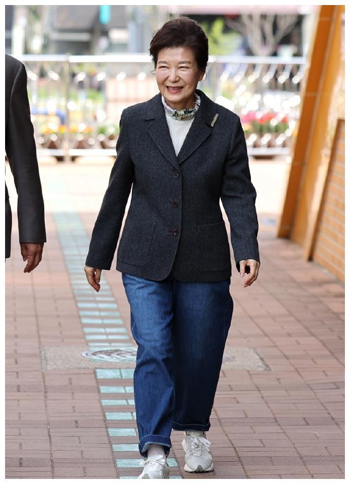 朴槿惠参加投票,穿宽松肥大牛仔裤很潮流,72岁仍不显老精神超好