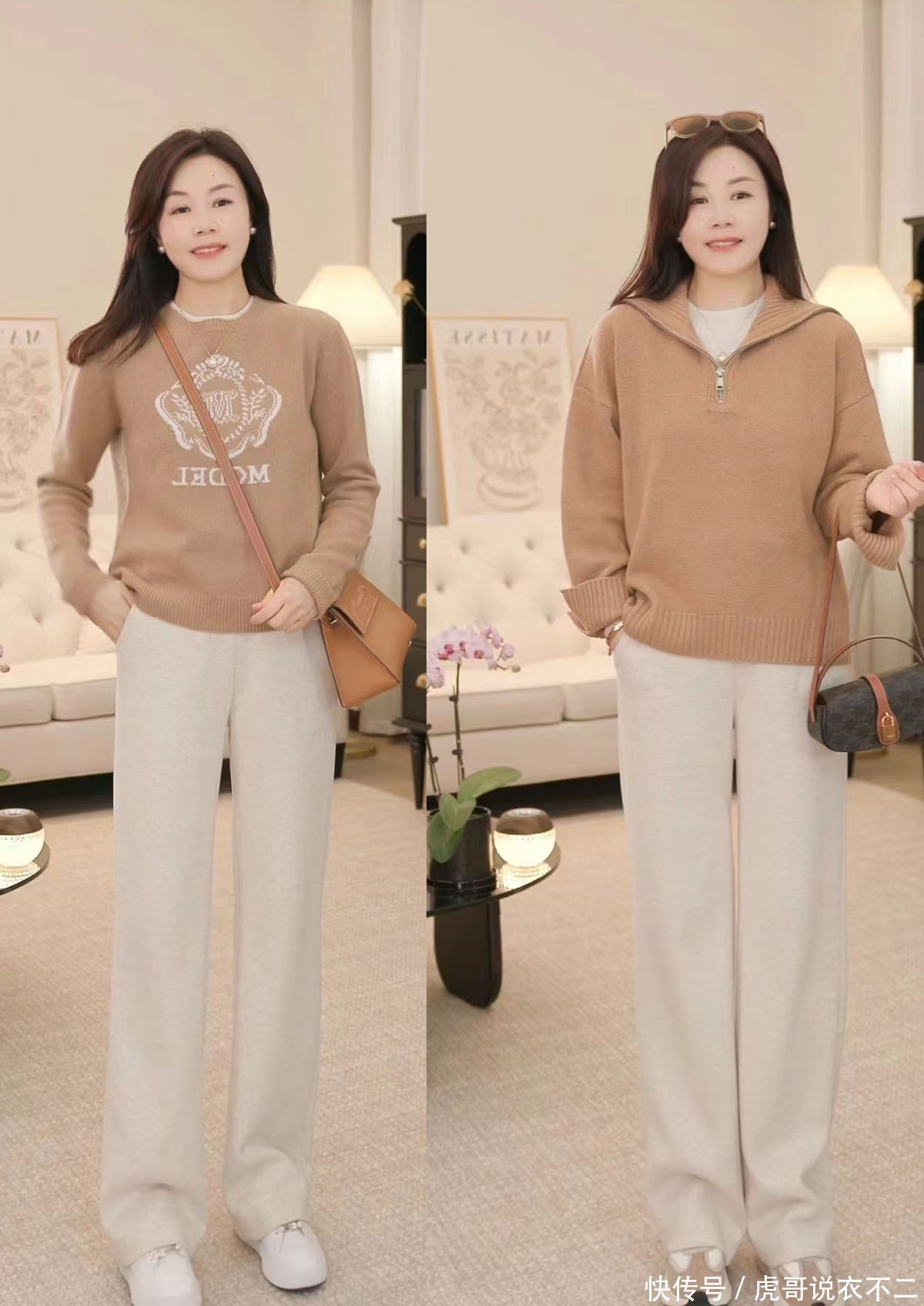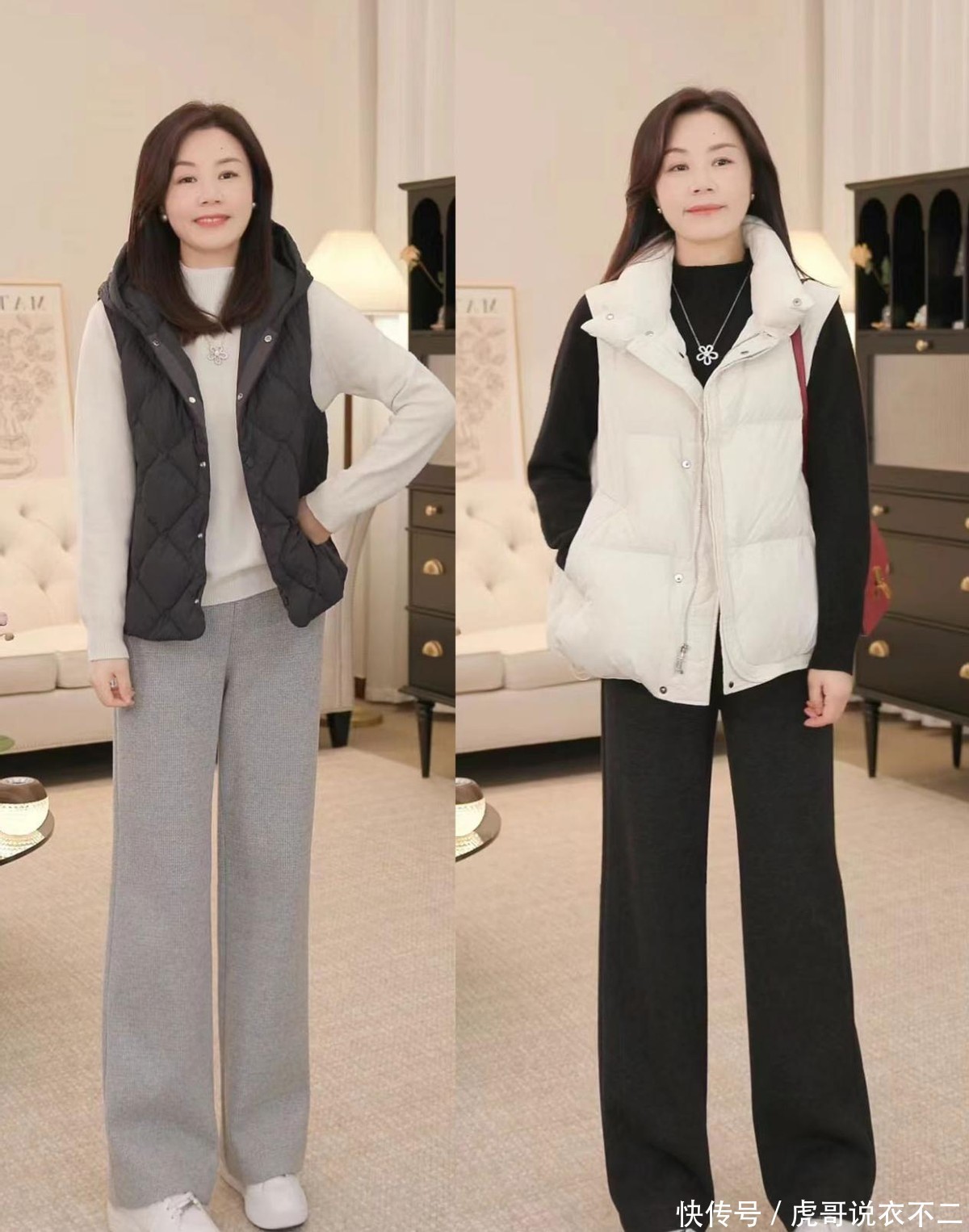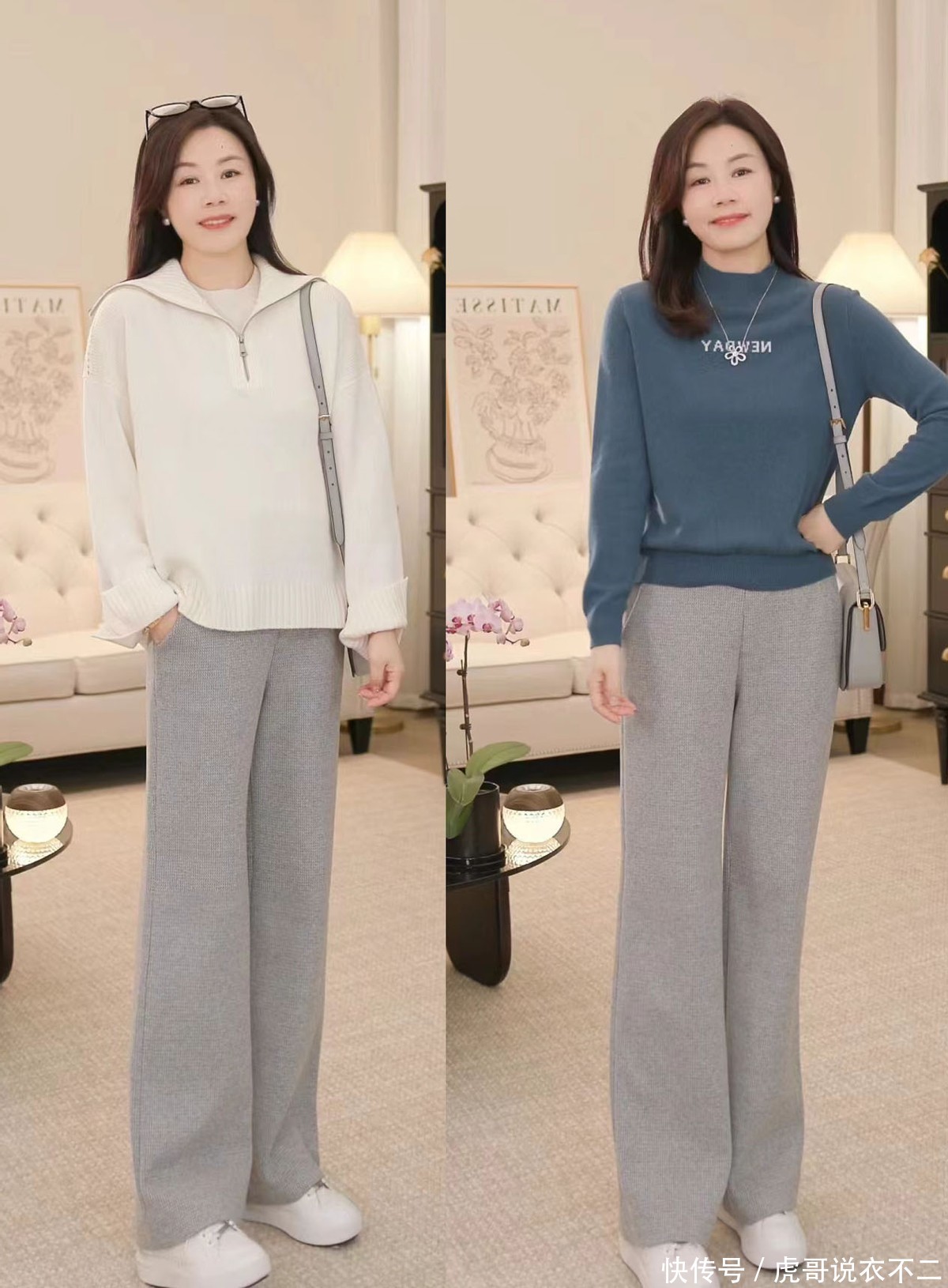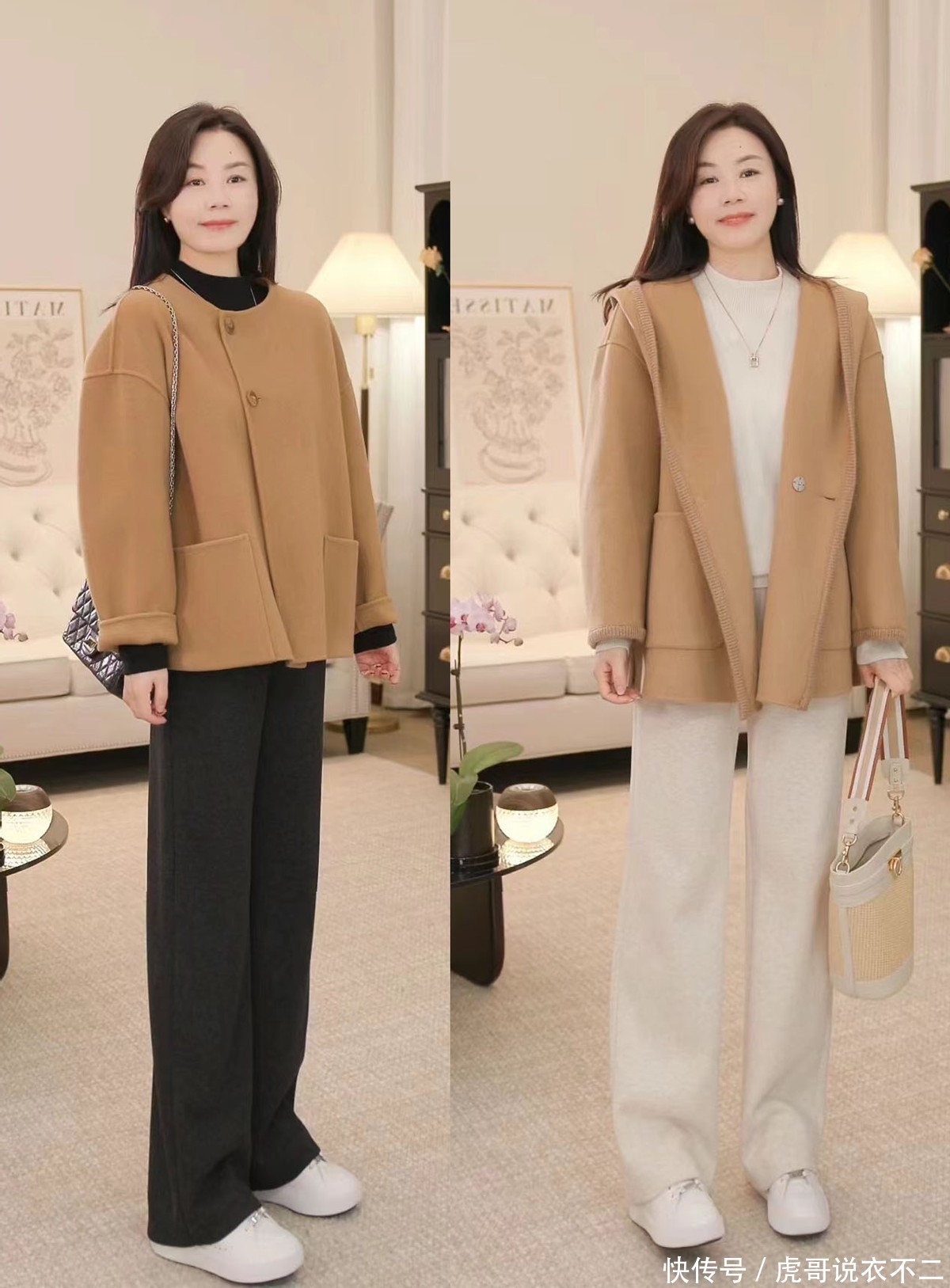 过了40岁的女人,早春都建议试试“短上装+直筒裤”,显瘦又时髦