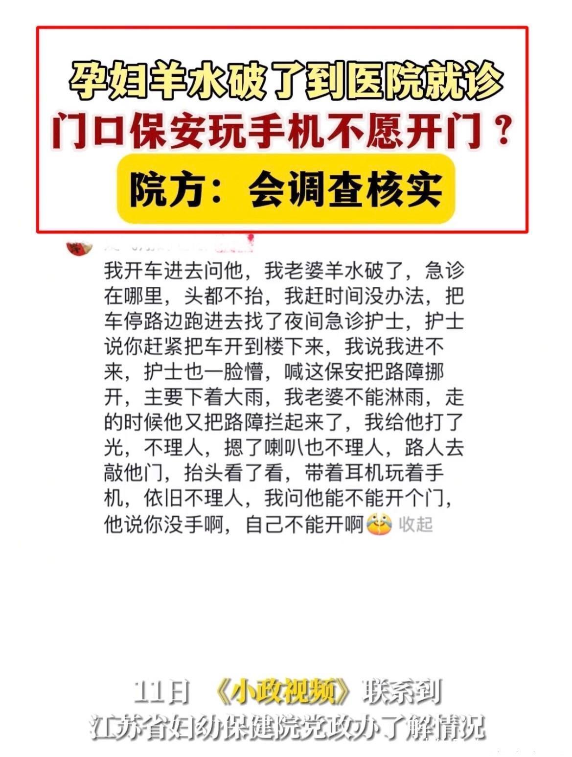 后续!孕妇羊水破了保安不开门,医院回应惹众怒,丈夫言行遭质疑