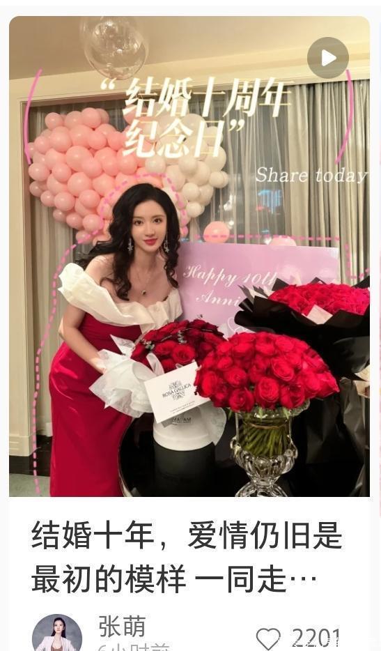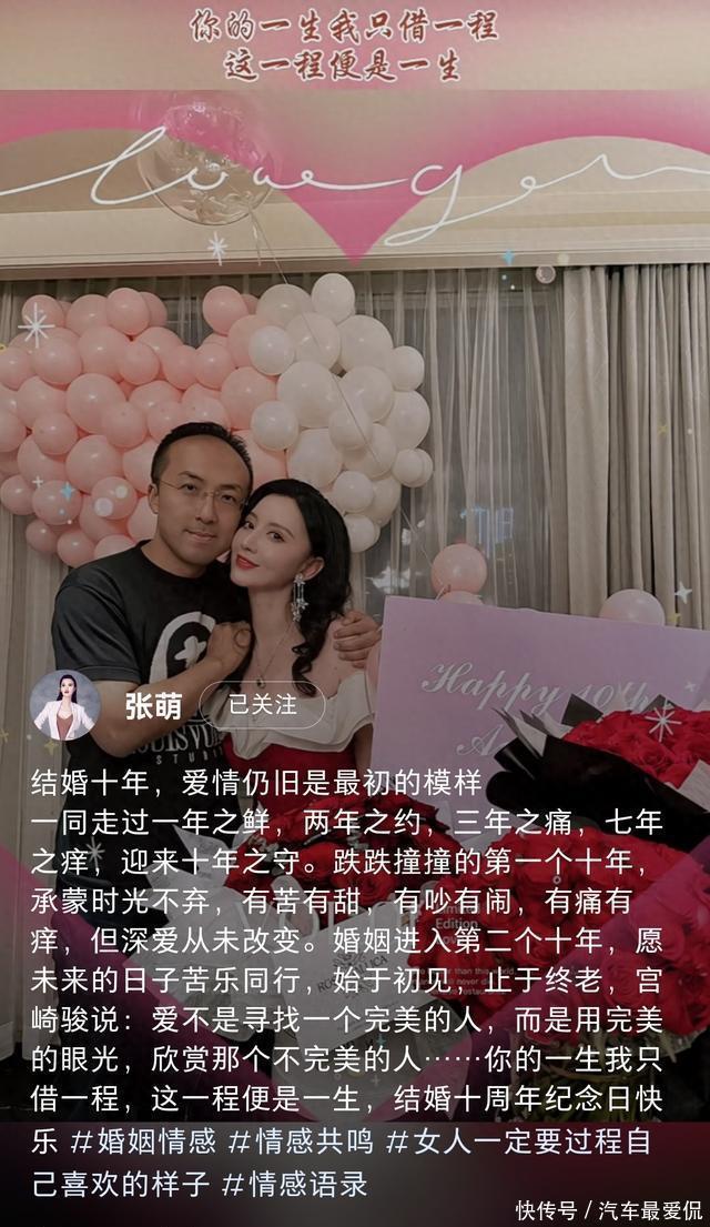 张萌庆祝结婚10周年,罕晒与富豪老公合影,住豪华酒店贴脸秀恩爱